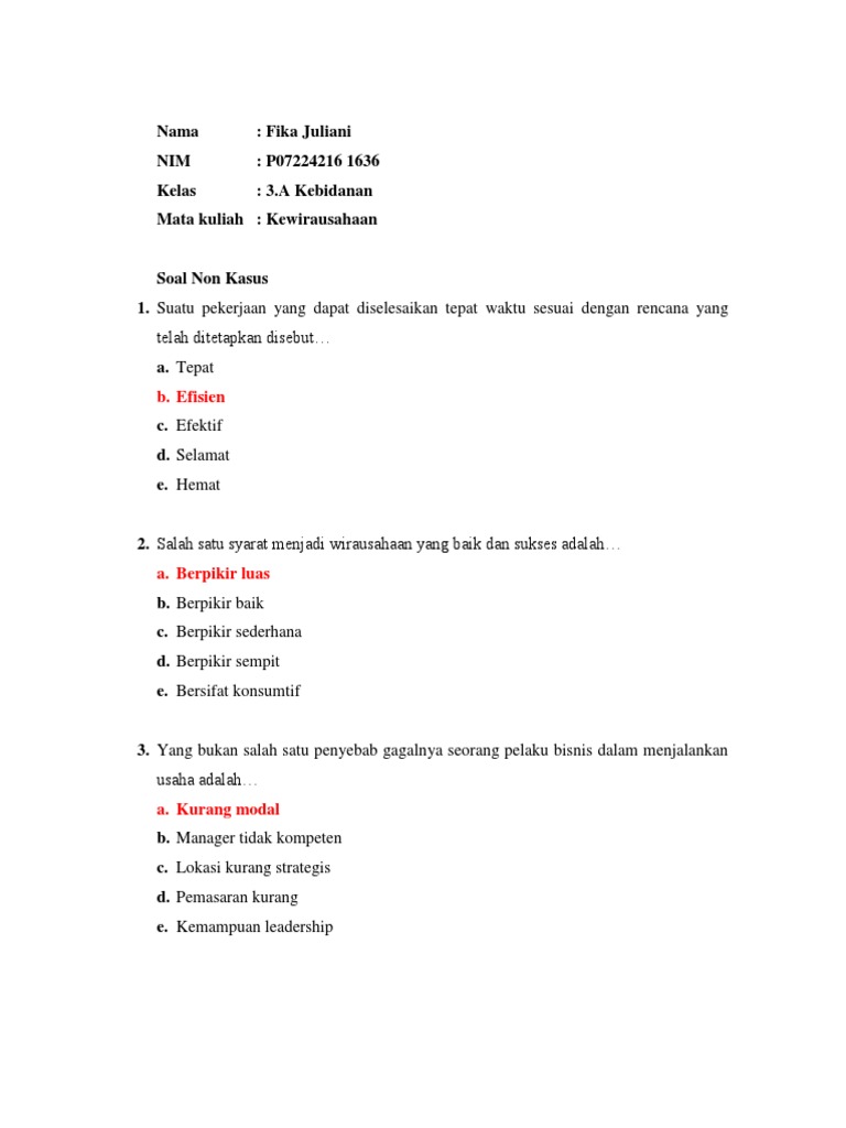Pembahasan Selain sukses wirausahawan juga dibutakan oleh kemungkinan gagal yang akan memberikan pelajaran bukan hanya untuk sukses. Namun perlu diketahui bahwa berdasarkan penuturan SBA atau Small Business Association mereka mengatakan bahwa 30 bisnis baru gagal di tahun keduanya sedangkan 50. Kemampuan leadership - Kecantikan - PAS Prakarya PKK SMA Kelas 11 Latihan Soal Online.