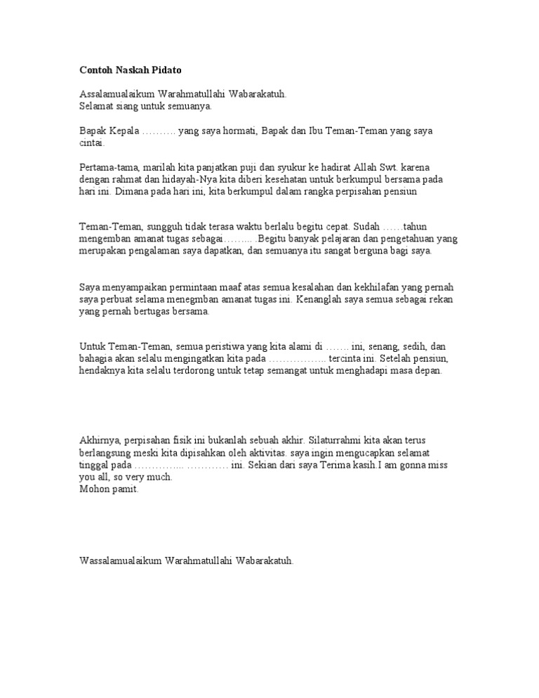 Biasanya ketika ada PNS yang pensiun maka akan dibuatkan acara perpisahanpelepasan. Tak lupa pula teman-teman yang kami cintai di sekolah ini. Contoh Pidato Peresmian Masjid Baru.