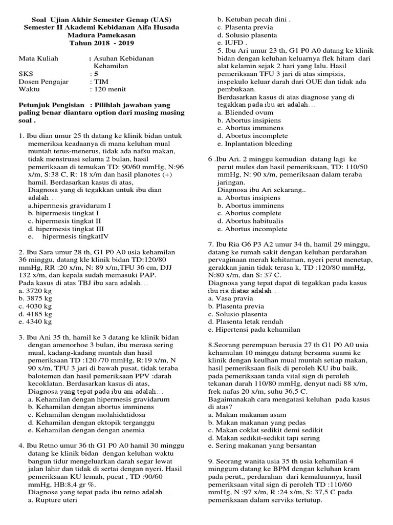 20200907 Contoh soal kasus askeb 2 beserta jawabannya. Contoh soal untuk uji kompetensi bidan 1 Asuhan Kebidanan Ibu Nifas dan Menyusui 1 1. G 23 tahun gii pi a0 hamil aterm datang ke tempat bidan pada jam 08 00 wib.