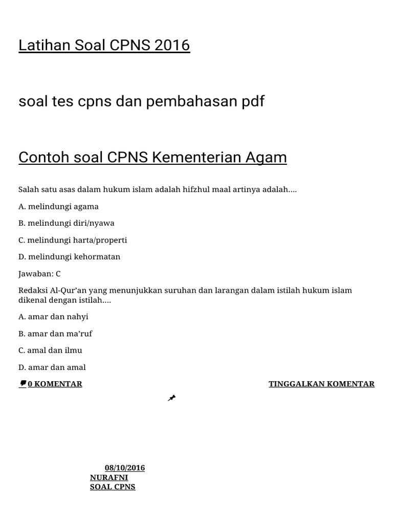 Soal Tes Cpns Dan Pembahasan Pdf Latihan Soal Cpns 2016