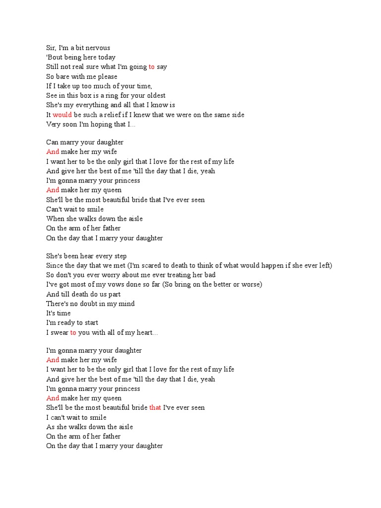 Who cares if were trashed got a pocket full of cash we can blow Shots of patron And its on girl. I was telling some dude about a big night out and he said Yes you were on that dancing juice It just resonated with me so I stuck it into Marry You. D Em G D D Its a beautiful night Em were looking for something dumb to do G D Hey baby I think I want to marry you.