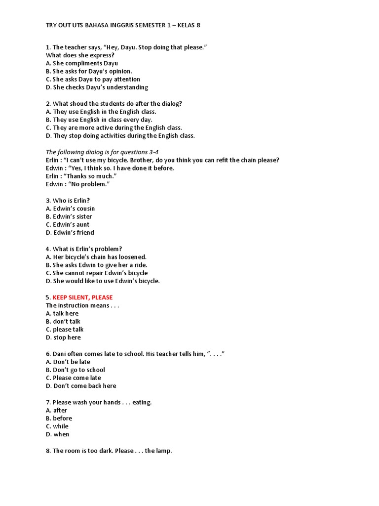 Soal Soal Bahasa Inggris Kelas 8 Smp Dan M Ts