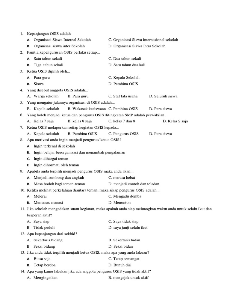 Doc Contoh Soal Kepemimpinan Osis Nailul Falah Academia Edu. Contoh Soal Tes Osis Ilmusosial Id. TES TULIS CALON PENGURUS OSIS DRAFT.