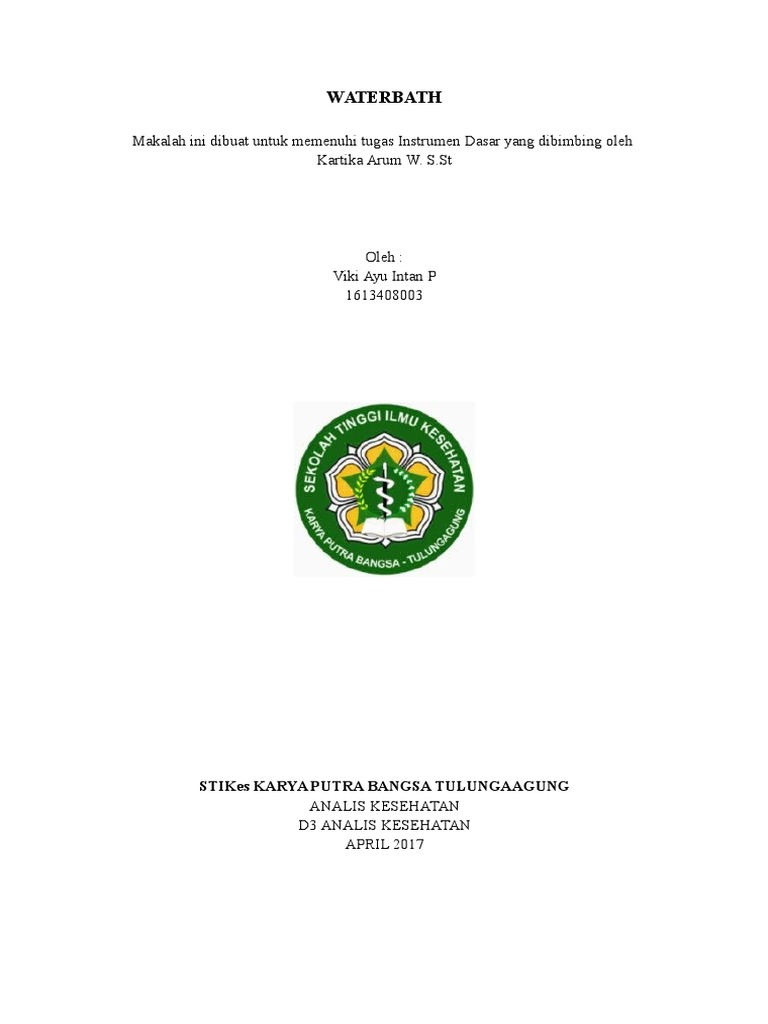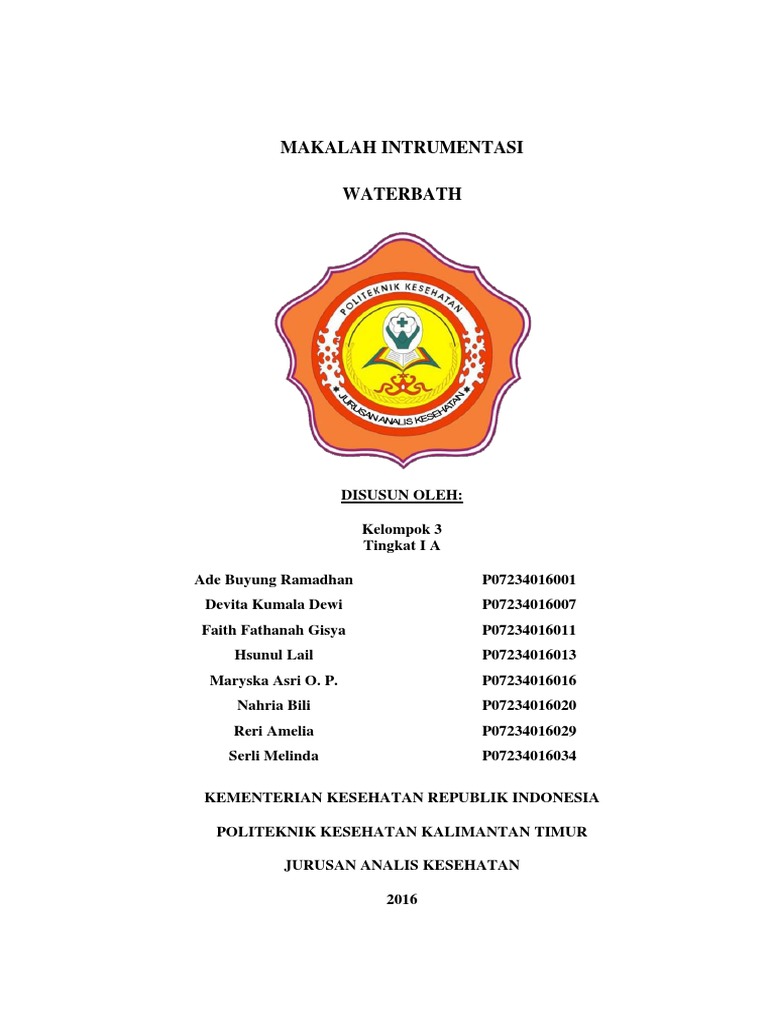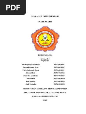 PDF On Jan 24 2019 Nopia Wati published BAB I PENDAHULUAN 11. Pengaturan waktu untuk melakukan suatu pemeriksaan perlu diperhitungkan karena banyaknya pemeriksaan yang dilakukan di dalam laboratorium maupun lapangan luar laboratorium. Puji syukur penyusun panjatkan ke hadirat Allah Subhanahu wataala karena berkat rahmat-Nya kami bisa menyelesaikan makalah yang berjudul Waterbath.