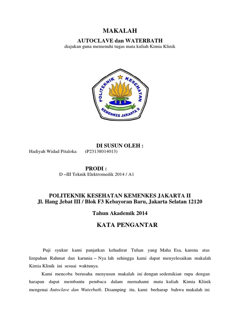 Harapan kami dengan adanya makalah ini dapat memberikan penjelasan dalam materi kimia klinik mengenai Alat Kesehatan Autoclave dan Waterbath secara lebih dalam. Makalah Water Bathdocx Please copy and paste this embed script to where you want to embed. Water Bath merupakan peralatan yang berisi air yang bisa mempertahankan suhu air pada kondisi tertentu selama selang waktu yang ditentukan.