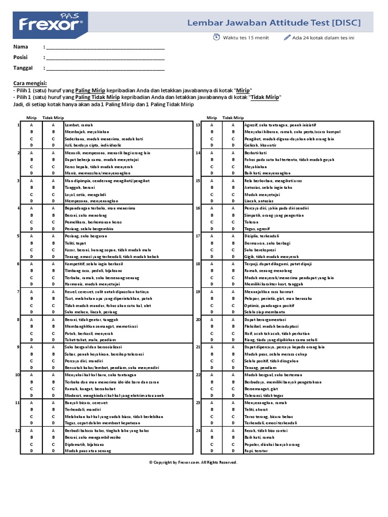 Psikotes Papi Kostick Dan Psikotes Disc Pdf Free Download. Kerjakan soal sesuai dengan petunjuk yang sudah ada. Kemudian testi diberi kesempatan bertanya kepada tester.